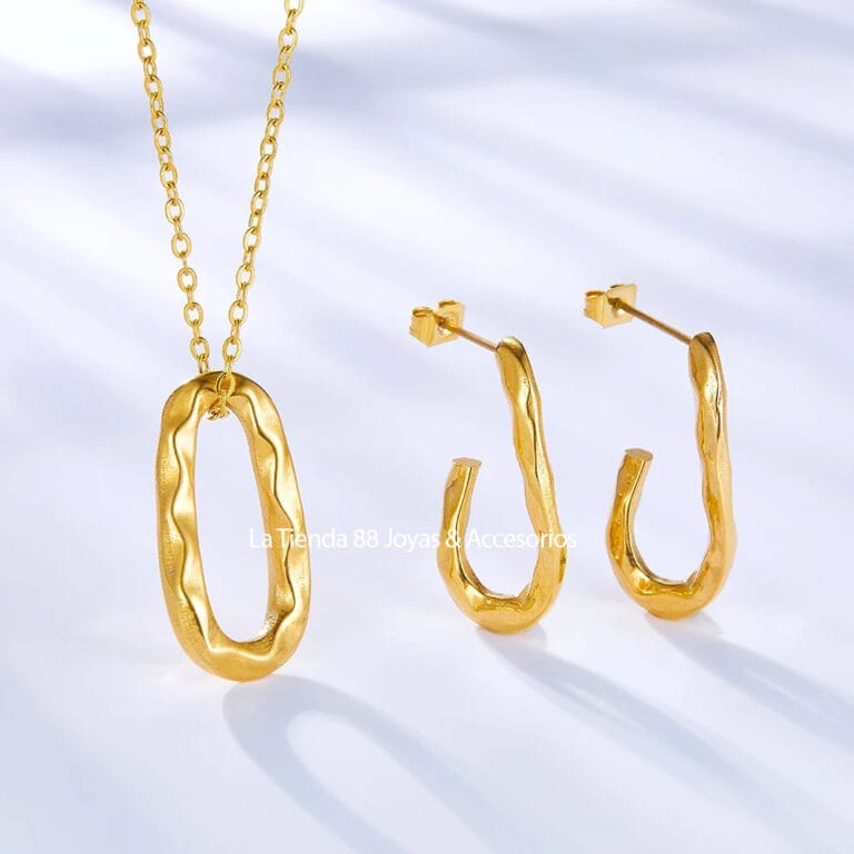 Set Collar y Arete Mujer Corazón Amor Eterno Bañado en Oro de 18k.