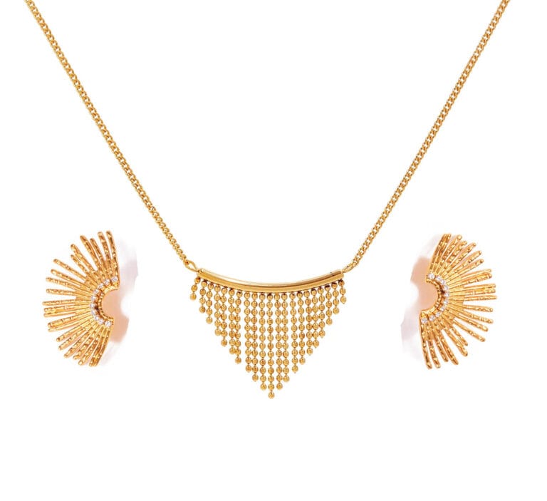 Set Collar y Arete Mujer Punto de Luz Bañado en Oro de 18k. – Lila